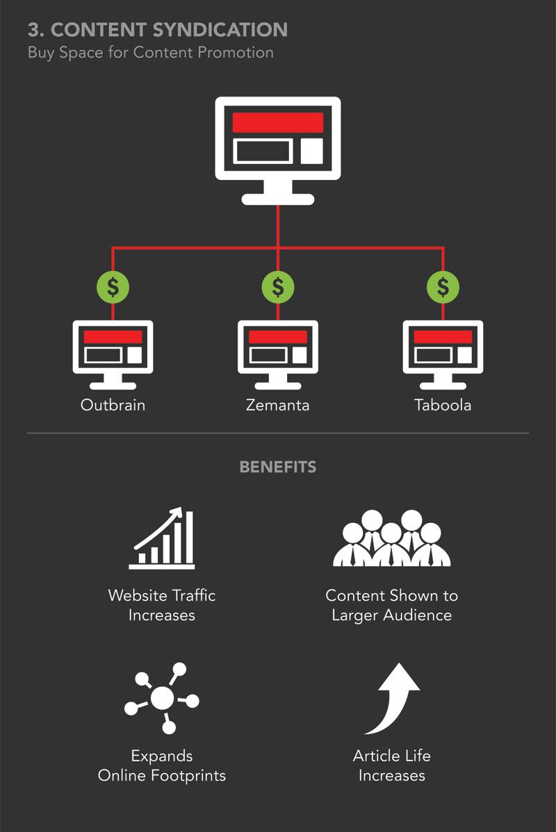 將內容於其他平台重複曝光,即便是支付部分行銷預算購買廣告版位也值得,所帶回的效益包括"流量增加"、"接觸更多更廣的閱聽人"、"深入到各族群或是平台"、"增加內容文章的生命周期"。